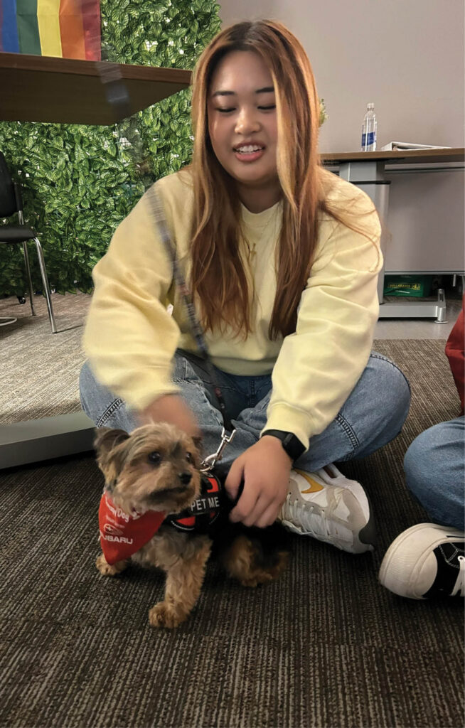 can find “pawffice hours,” along with wellness tips and resources, on the program’s Instagram account: @cutherapydog